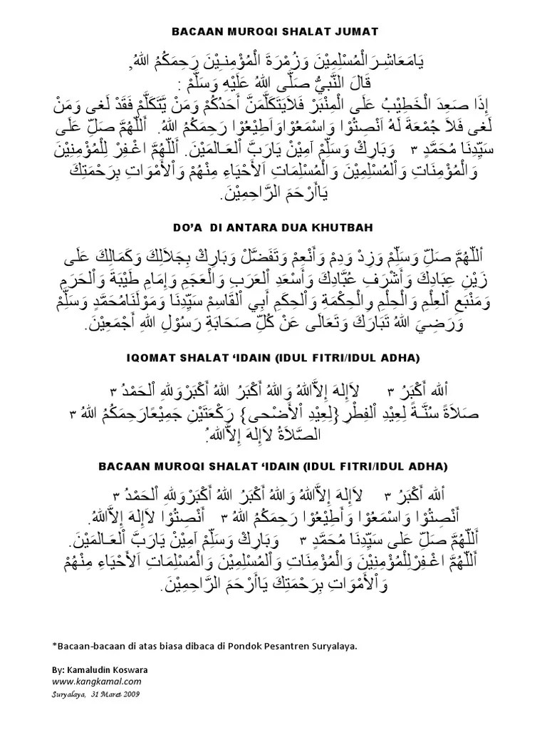 bacaan bilal untuk shalat jumat. jumat, 12 februari 2021 13:21. Berbeda dengan shalat jumat, bilal atau muroqi pada pelaksanaan shalat idul fitri 1442 hijriyah tidak diperkenankan mengumandangkan adzan dan iqomah. Sholat yang dikerjakan 2 rakaat dan di waktu dzuhur pada hari jumat ini memiliki banyak keutamaan. Lumayanlah buat bahan bacaan sobat kantorkita, siapa tahu ada yang ditunjuk jadi petugas jum'at.